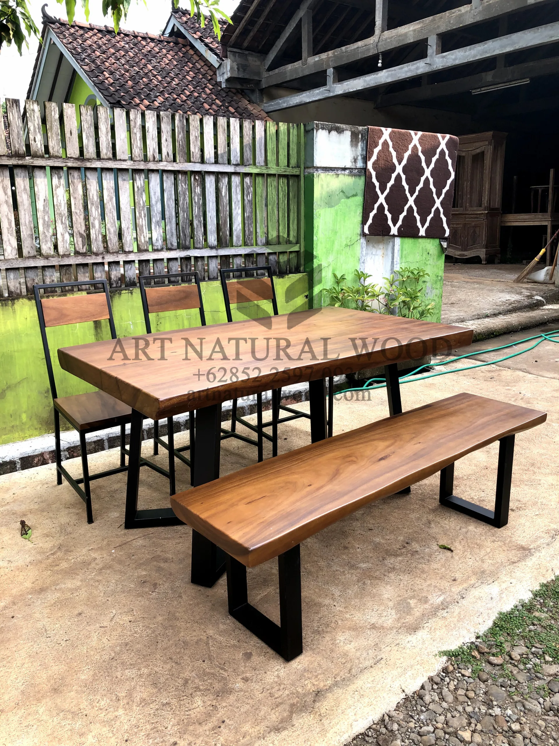 Set Meja Makan Industrial Kayu Trembesi