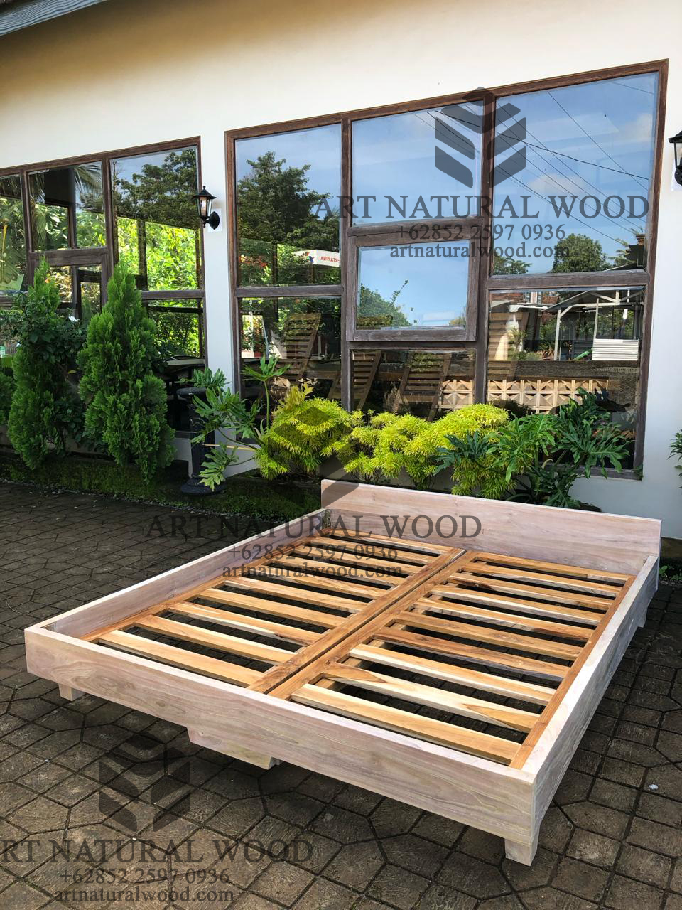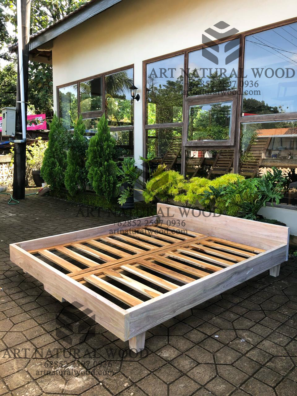 TEMPAT TIDUR RUSTIC WHITEWASHED KAYU JATI MINIMALIS MODERN